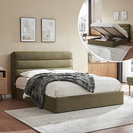 Lift Up Storage Bed Queen Size, Upholstered Platform Bed