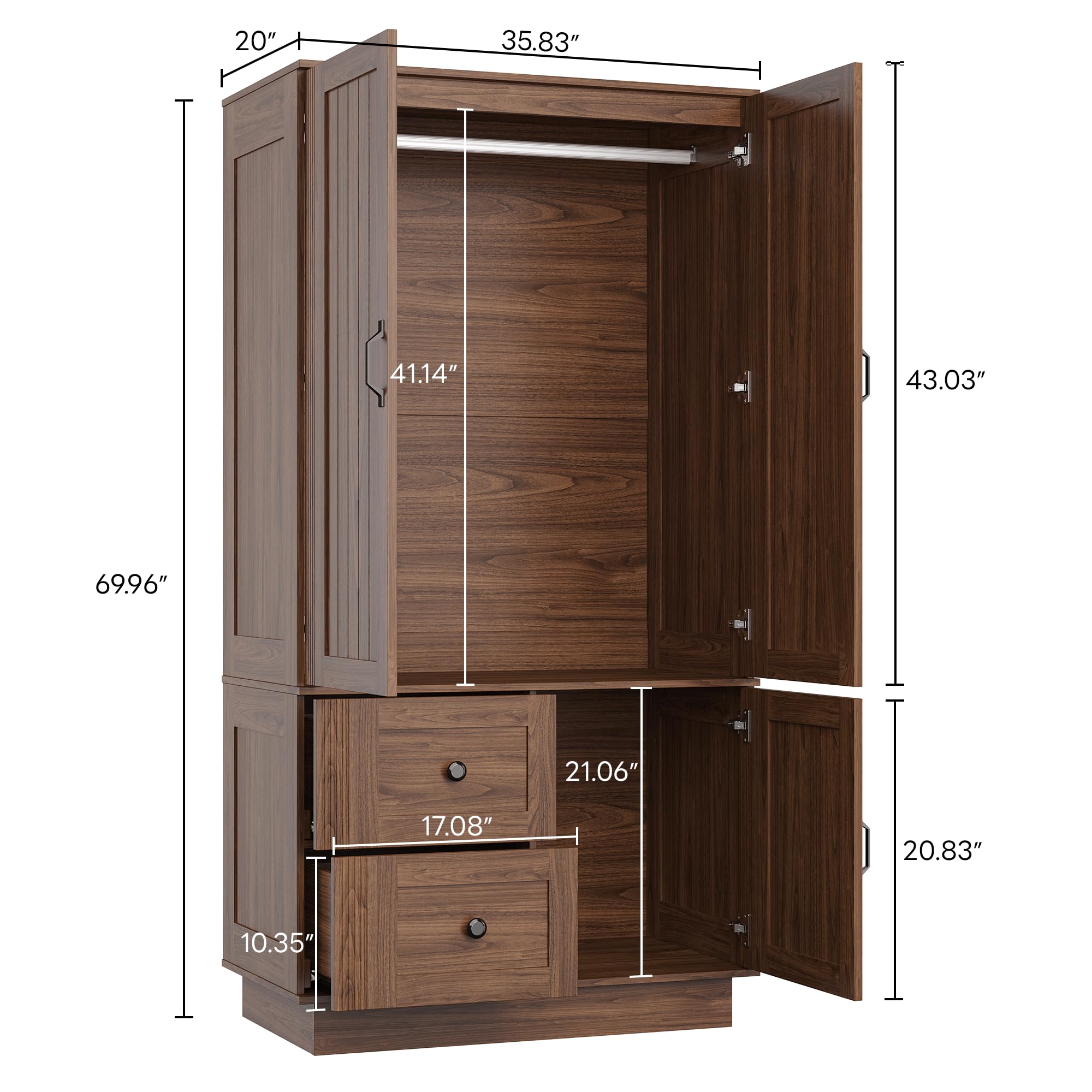 Farmhouse Wardrobe Closet with Doors, 70" Bedroom Armoires