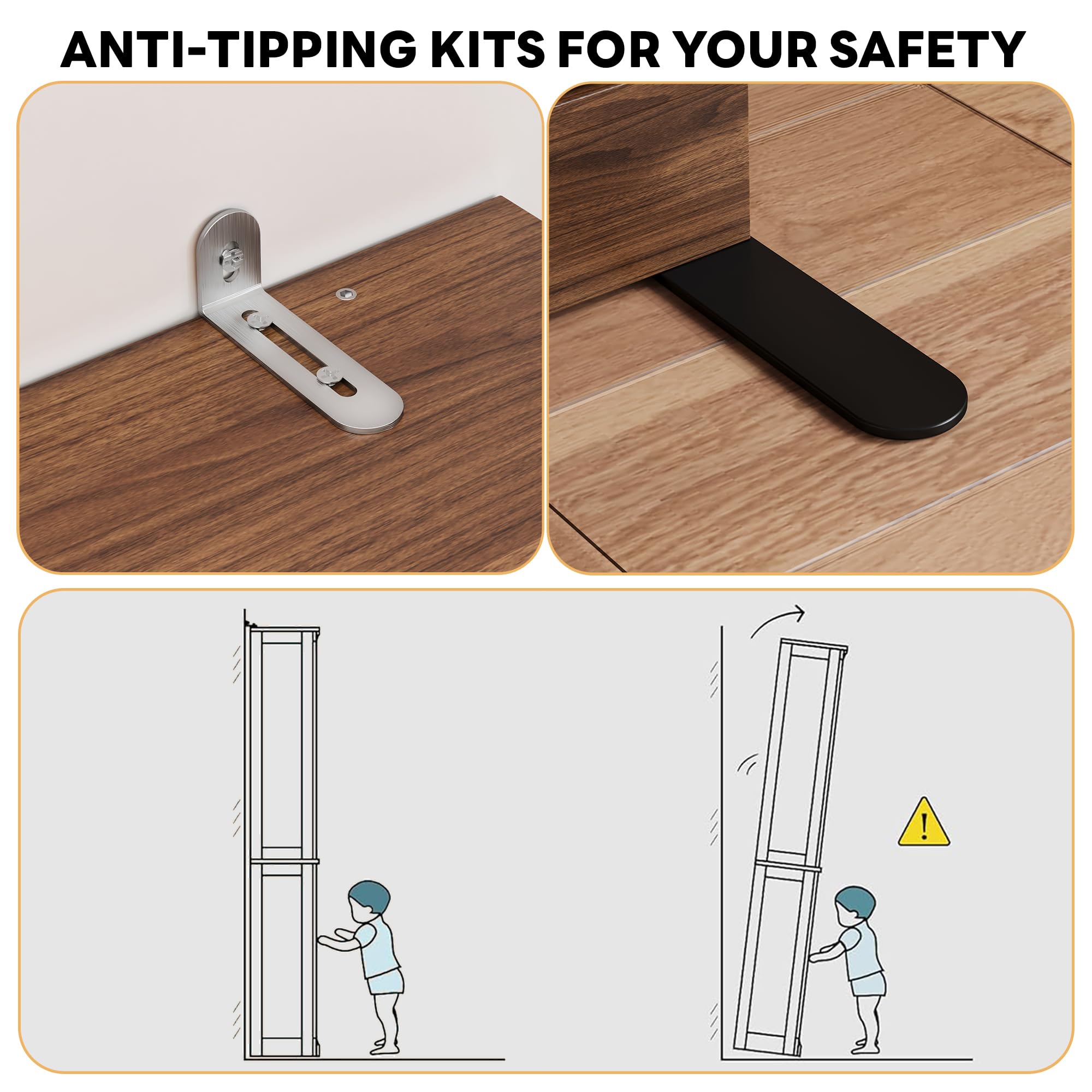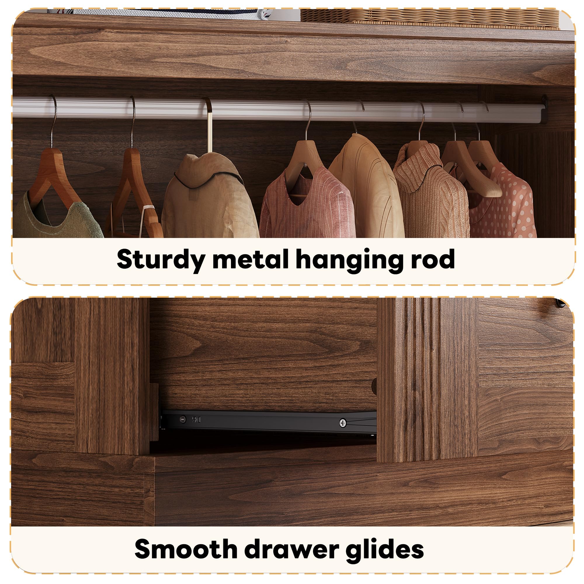- Enhanced Safety with Anti-Tip Kit Included: Safety comes first. This armoire wardrobe closet with drawers comes with a wall-anchoring anti-tip kit to prevent tipping accidents. Rest easy knowing your wardrobe cabinet stays securely in place, even in active family environments.
