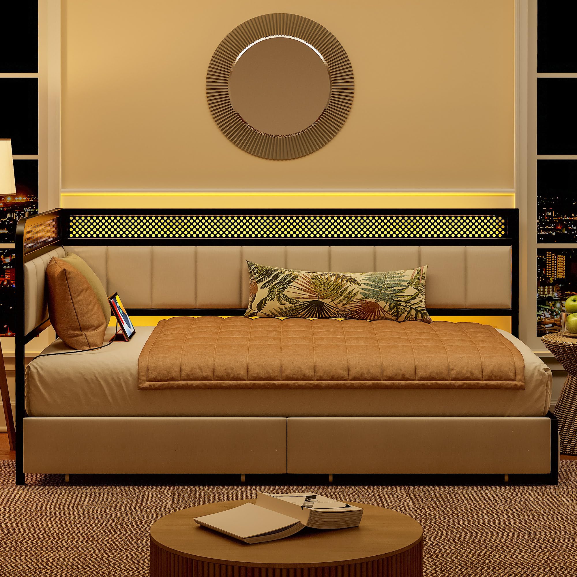Special Feature | Space Saving, Upholstered, Storage Drawer, LED Lighting, Charging Station |