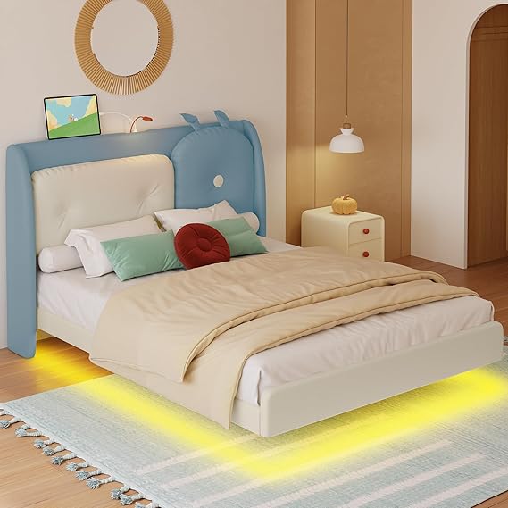 - MODERN KIDS BED FRAME: Made of high-quality faux leather and complemented by a cute rabbit-ear-shaped headboard, LIKIMIO bed is not only beautiful and generous, but also soft and delicate to the touch, adding fun to your child's bedroom.