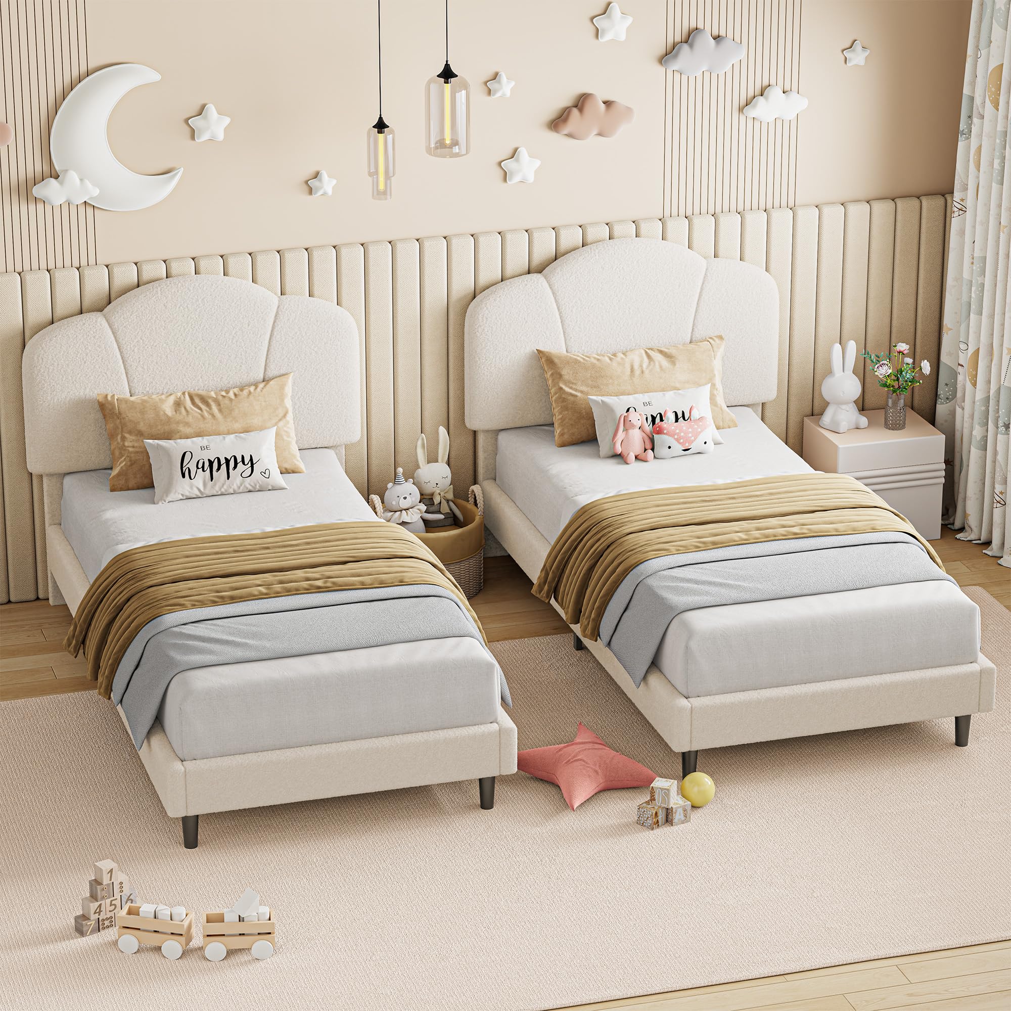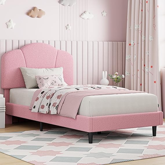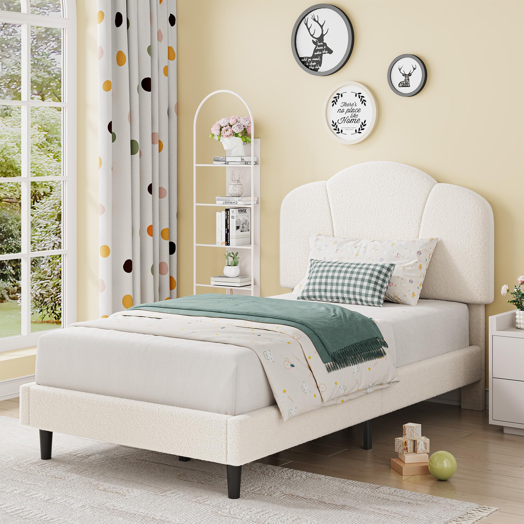 - COMFORTABLE & COZY HEADBOARD: Crafted with premium lamb velvet fabric, the entire surface of this twin bed is skin-friendly.It offers a soft, fluffy, and breathable touch, adding warmth and a dash of whimsy to your bedroom. The headboard's high-resilience and thick sponge padding provides a cozy oasis for relaxation