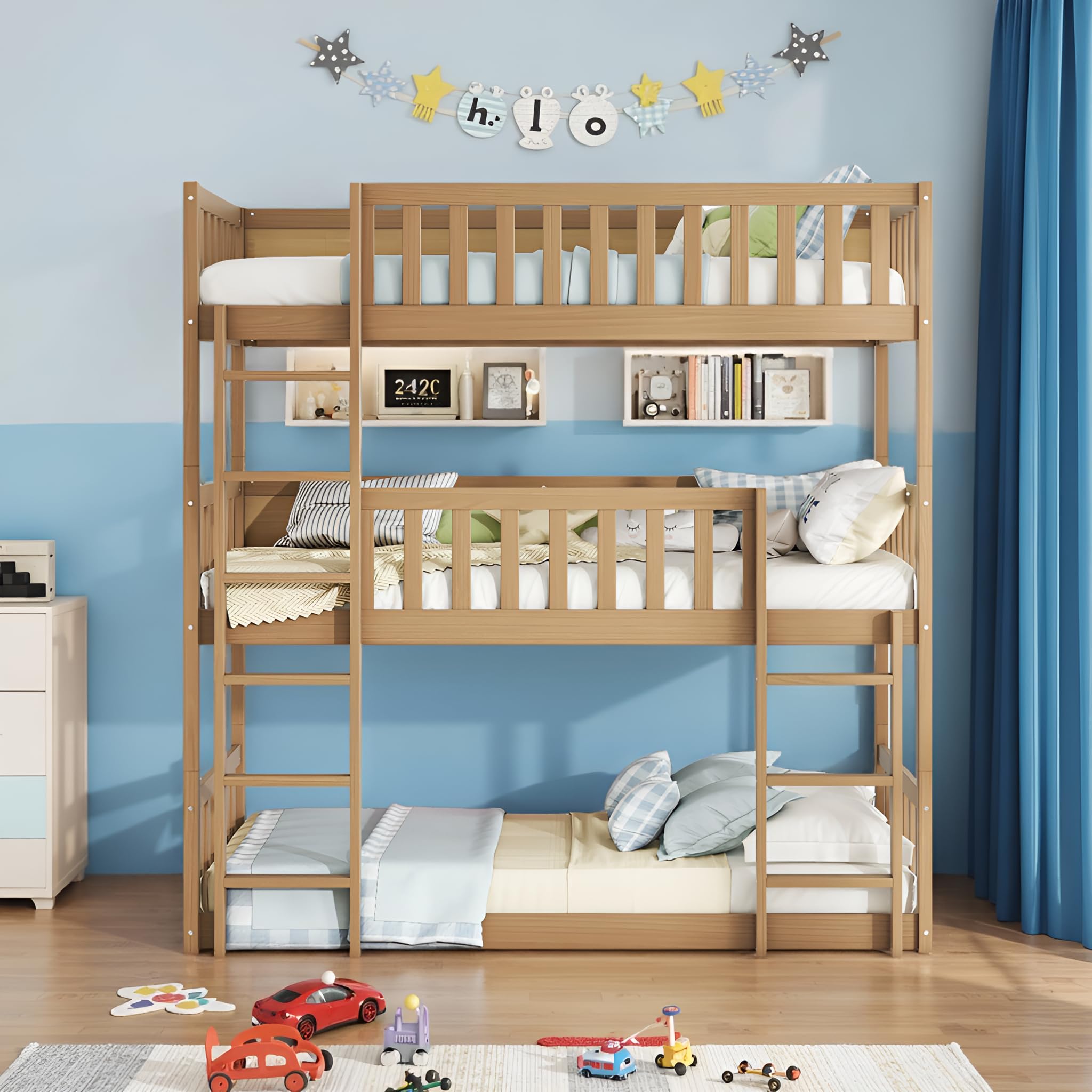Rubberwood Triple Bunk Beds for Kids, Twin Over Twin Over Twin Size