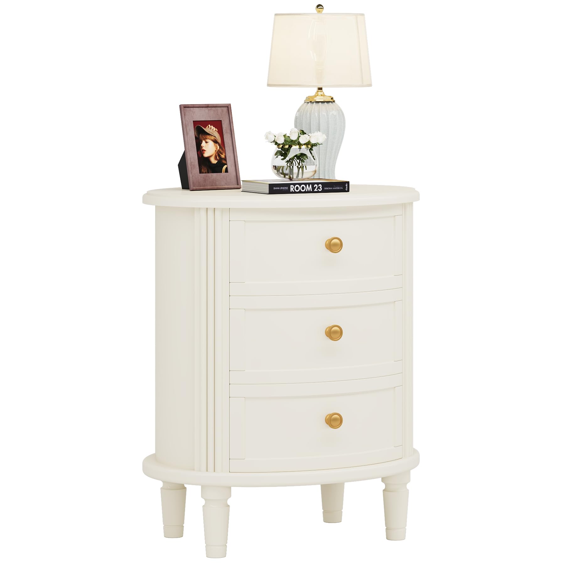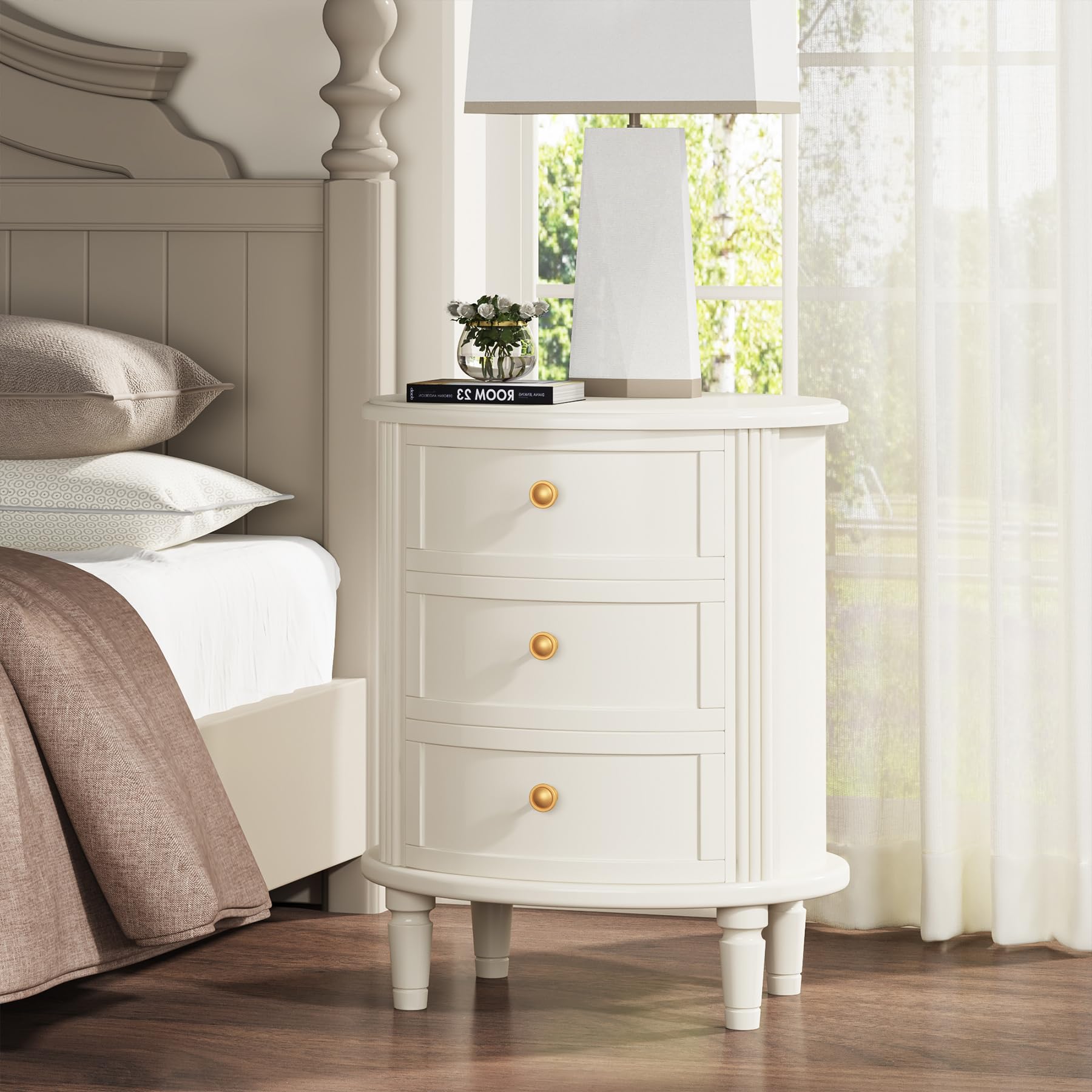 - Â Make a captivating statement with our wood nightstand's unique oval silhouette. Its distinctive shape imbues your space with an air of sophistication and elegance, making it a captivating focal point. Elevate your interior aesthetics and infuse a modern farmhouse charm with this eye-catching piece.