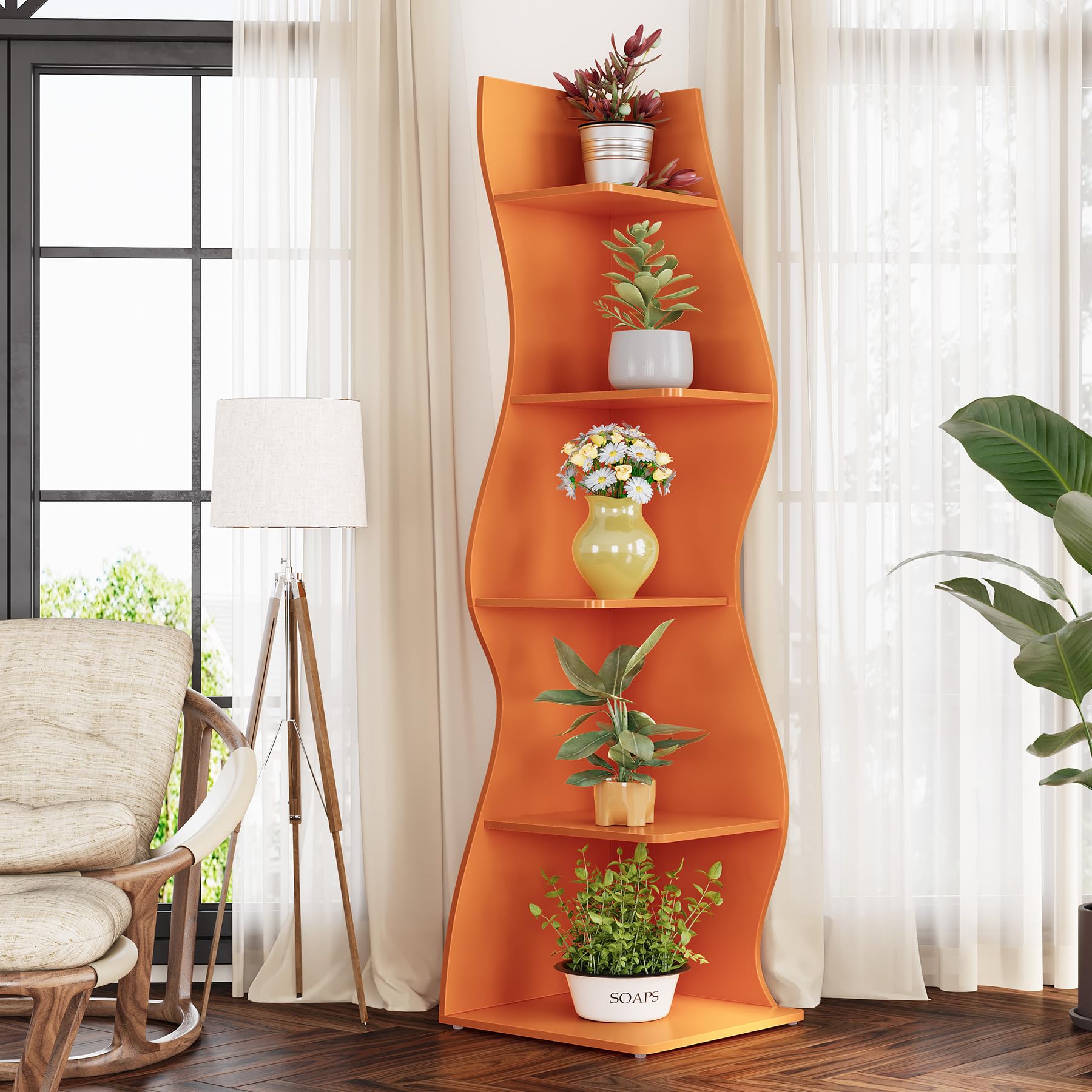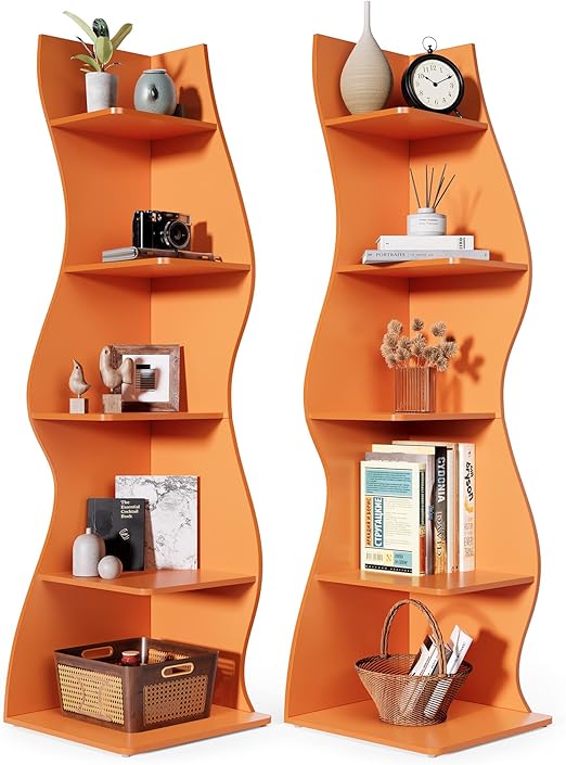 Small Corner Shelf, Modern 5-Tier Wall Corner Bookshelf
