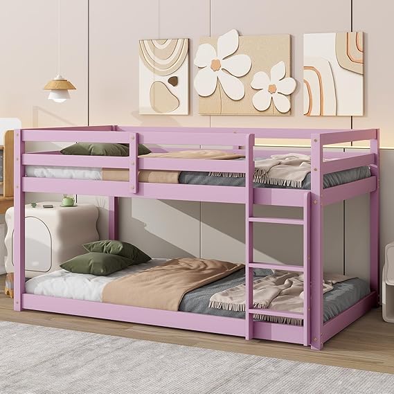 - The low height feature of this bunk bed not only ensures better stability but also increases versatile utilization. The unique design offers diverse sleeping preference as well as optimizing storage space. The built-in ladder is crafted with a wider width to provide more spacious steps and solid support, making it easier for you to climb up and down the ladder.