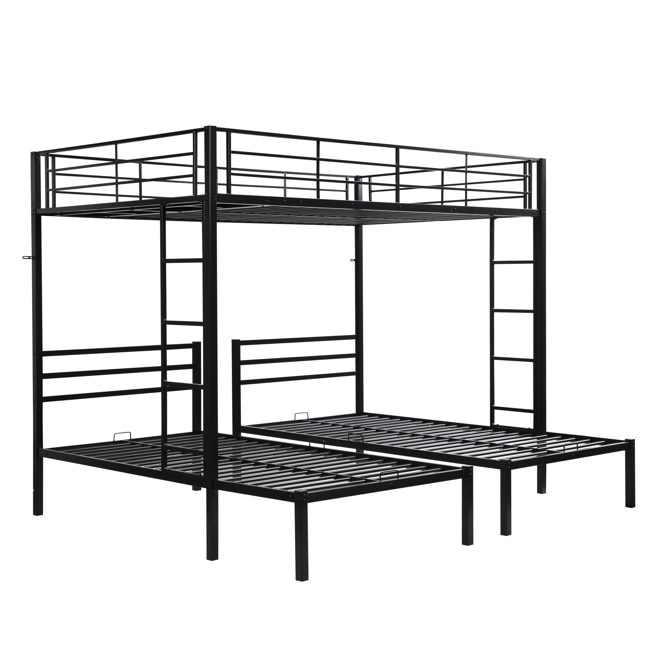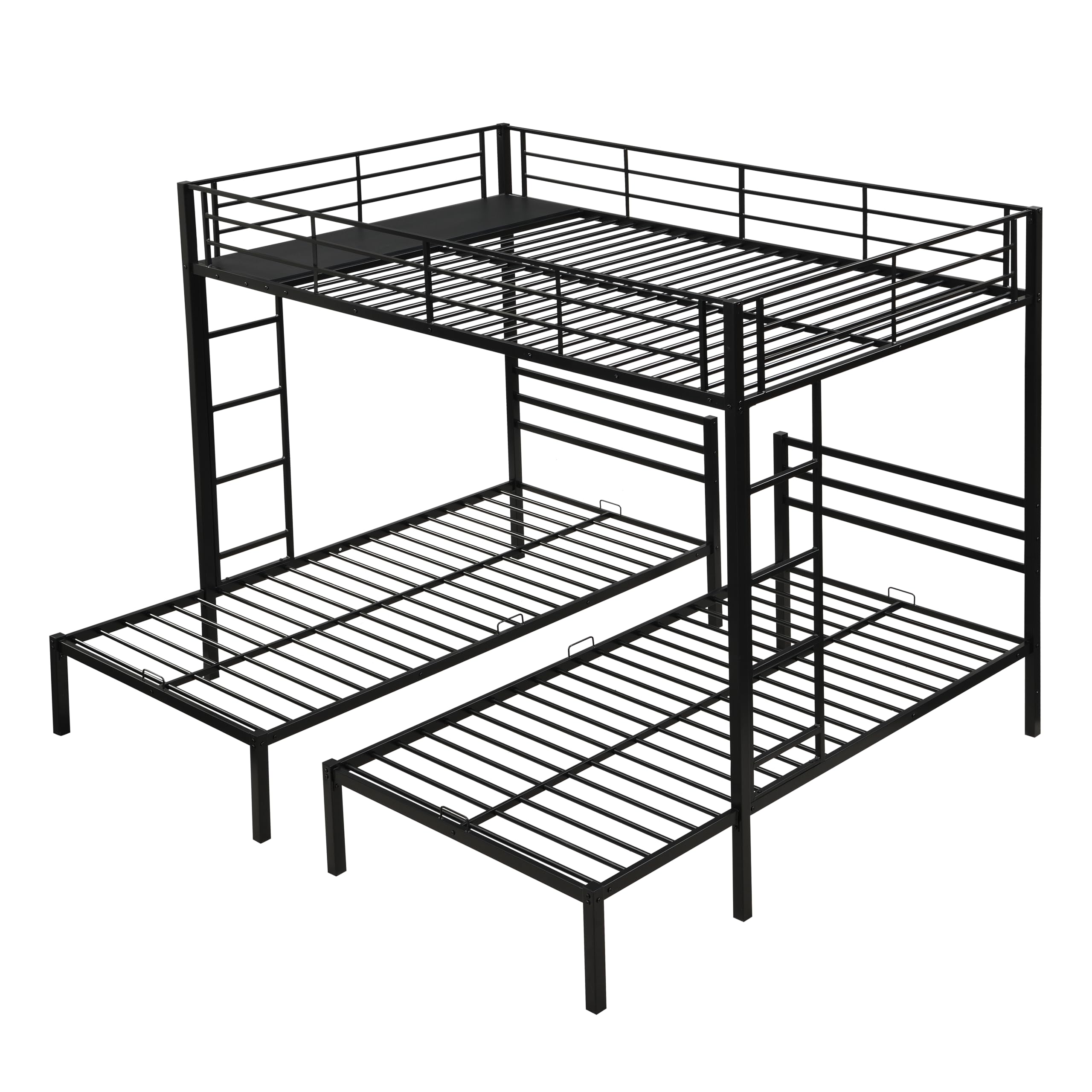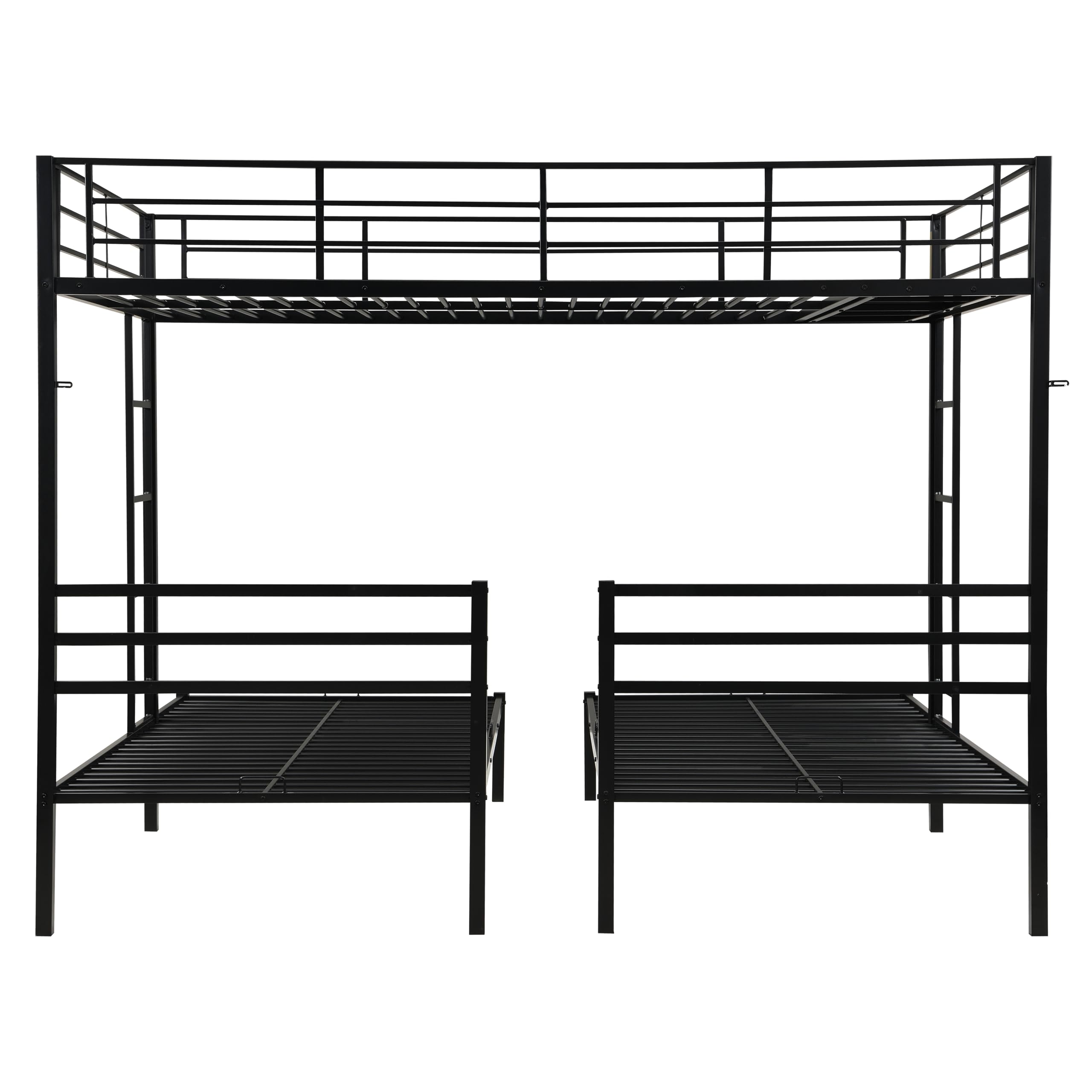 International Metal Triple Bunk Bed, Full Over Twin Over Twin, Black Frame