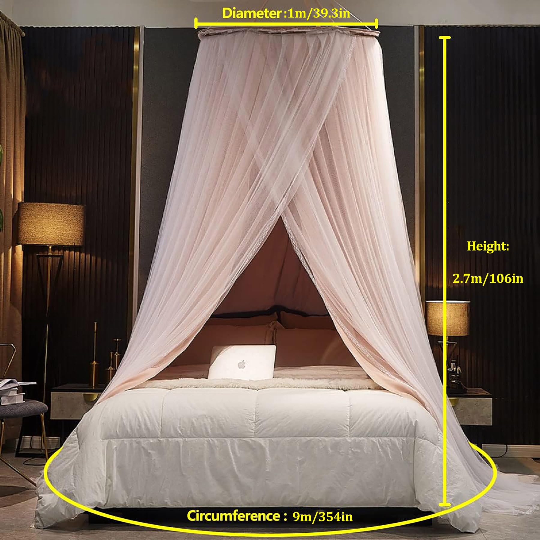 - Romantic Bedroom Decoration: Add more romance and elegance to the room by hanging this round dome canopy . The luxurious royal design style of bed curtains transform your indoor room into a charming palace. You can also decorate it with fairy lights and dream catchers, the mosquito netting will be more pretty and dreamy. Ideal for both indoor or outdoor uses.