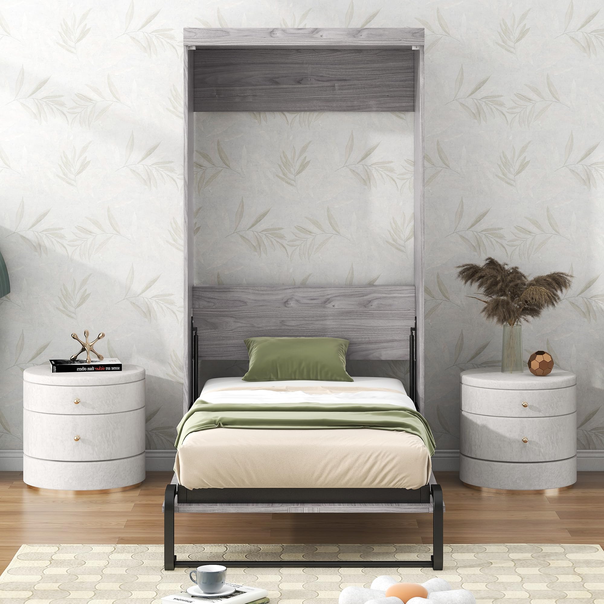 LUMISOL Twin Size Murphy Bed Frame, Wood Foldable Wall Bed, can be Folded into a Cabinet, Gray