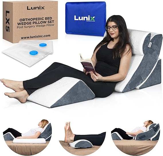 - While other bed wedge pillows are too firm and uncomfortable, fail to relieve post-surgery pain or slide down making it impossible to fall asleep or relax in a pain-free position, the Lunix LX5 4pcs Orthopedic Bed Wedge Pillow Set is made of premium 45D memory foam to quickly conform to your body shape and height. The head pillow's unique Velcro strap prevents slipping and provides hours of comfort. Kids can enjoy it as well!