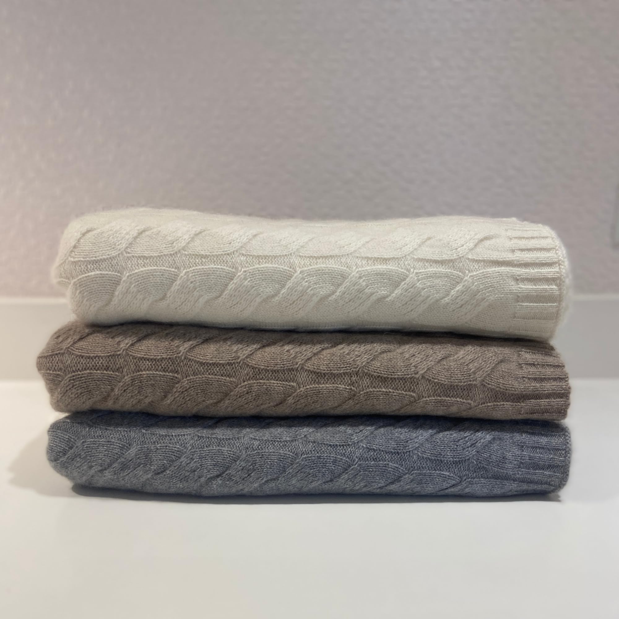 Luxurious 100% Cashmere Cable Knit Throw Blanket – Ultra-Soft