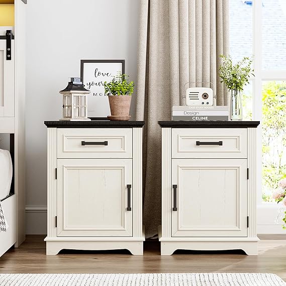 Farmhouse Nightstand Set of 2, Bedside Table with Drawers for Bedroom