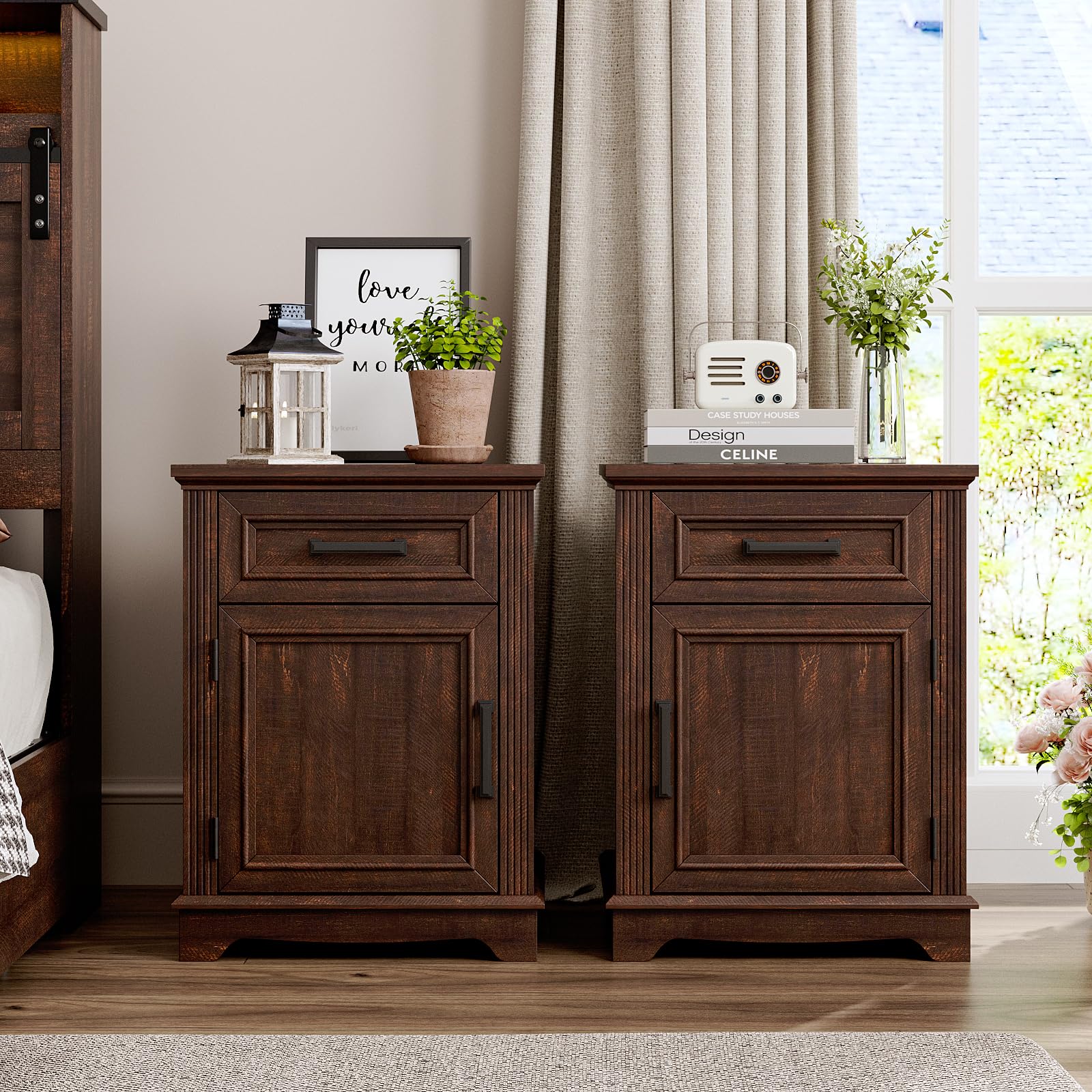 - EASY INSTALLATION AND DURABILITY: The wood nightstand sets are designed for easy installation, saving you time and effort. Crafted from high-quality wood, these brown end tables are built to last, ensuring long-term durability and reliability.