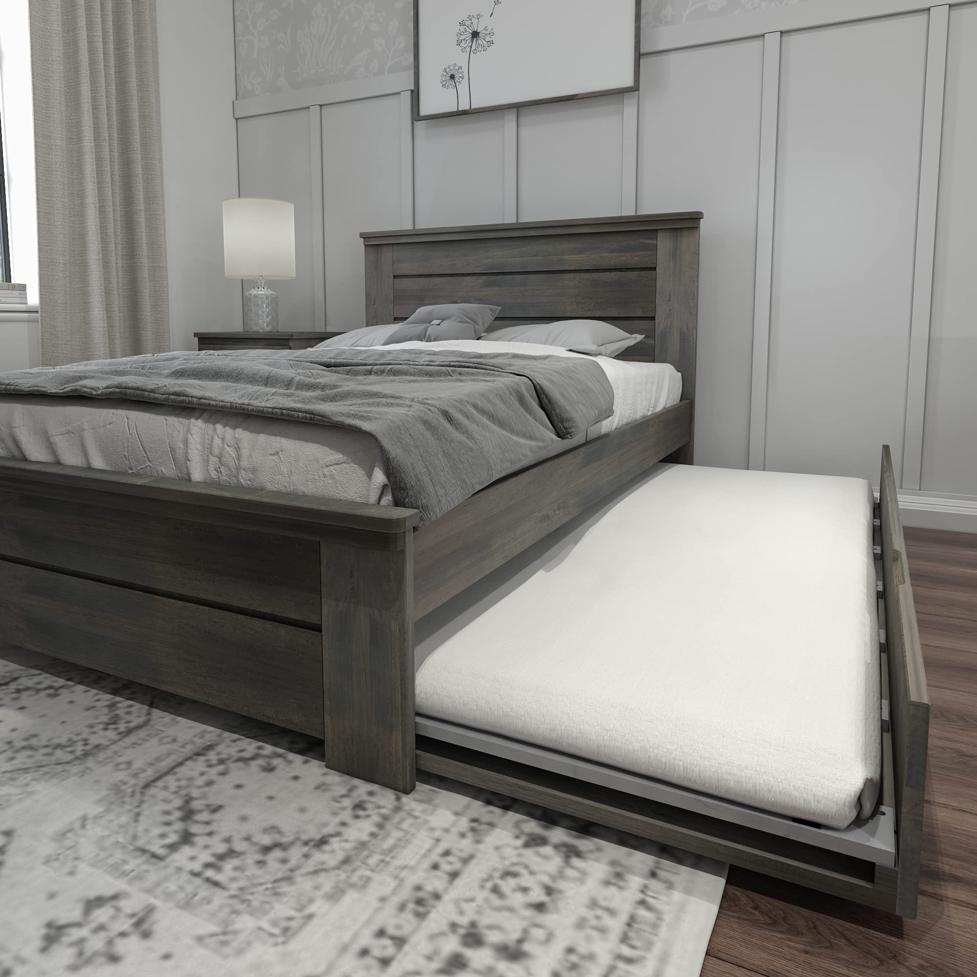Modern Farmhouse Full Bed with Panel Headboard and Trundle, Driftwood