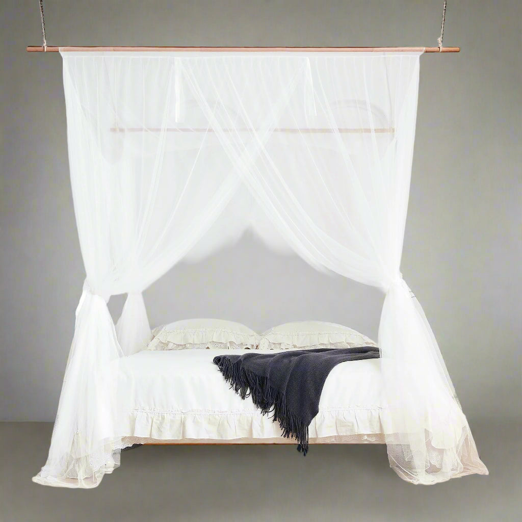 - Easy Setting Up:These sheer Curtains with top dual rod pockets design, easier to hang or slide.Wooden poles are equipped with threaded joints, no tools required,install 4 hooks and 4 anchors on the ceiling-tie the rope to the hook,and secure the bed poles.If there is any questions please feel free to contact with us, our customer service team will response in 24 hours.