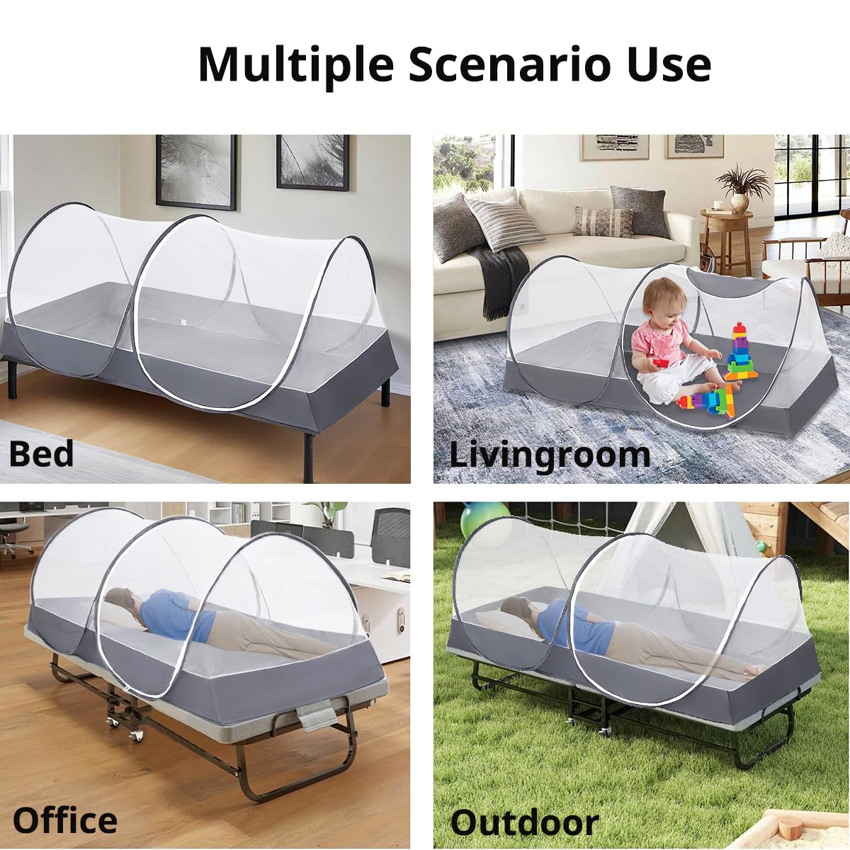 - Simple Design: It has one door with zipper for easy entrance.The botton is Waterproof design, so fully enclosed,keep bugs away and suitable for outdoor.