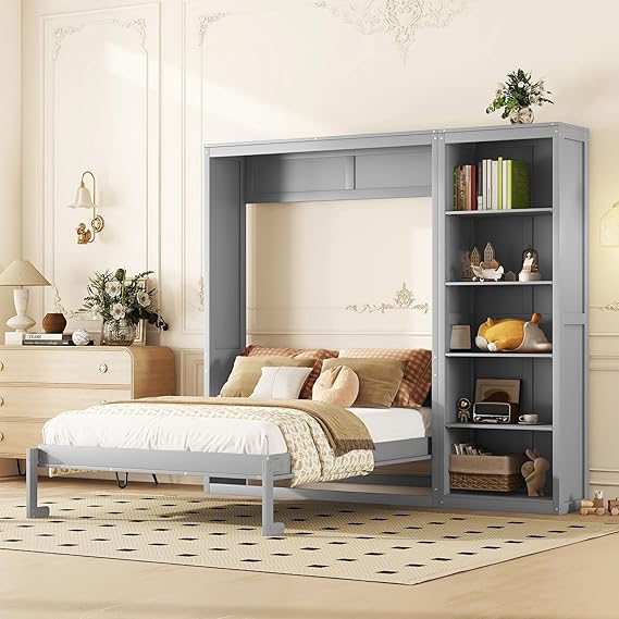 - [Space Saving Murphy Bed] This Murphy bed can be folded away into a cabinet to open up floor space in any room. A wall bed is the ideal space-saving furniture for a multi-use guest room, home office, or home gym. With a five-layer cabinet that can be equipped on either side of the bed, this Murphy bed provide more space for you to store home items. It's stylish and practical.