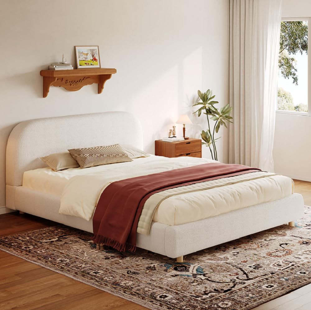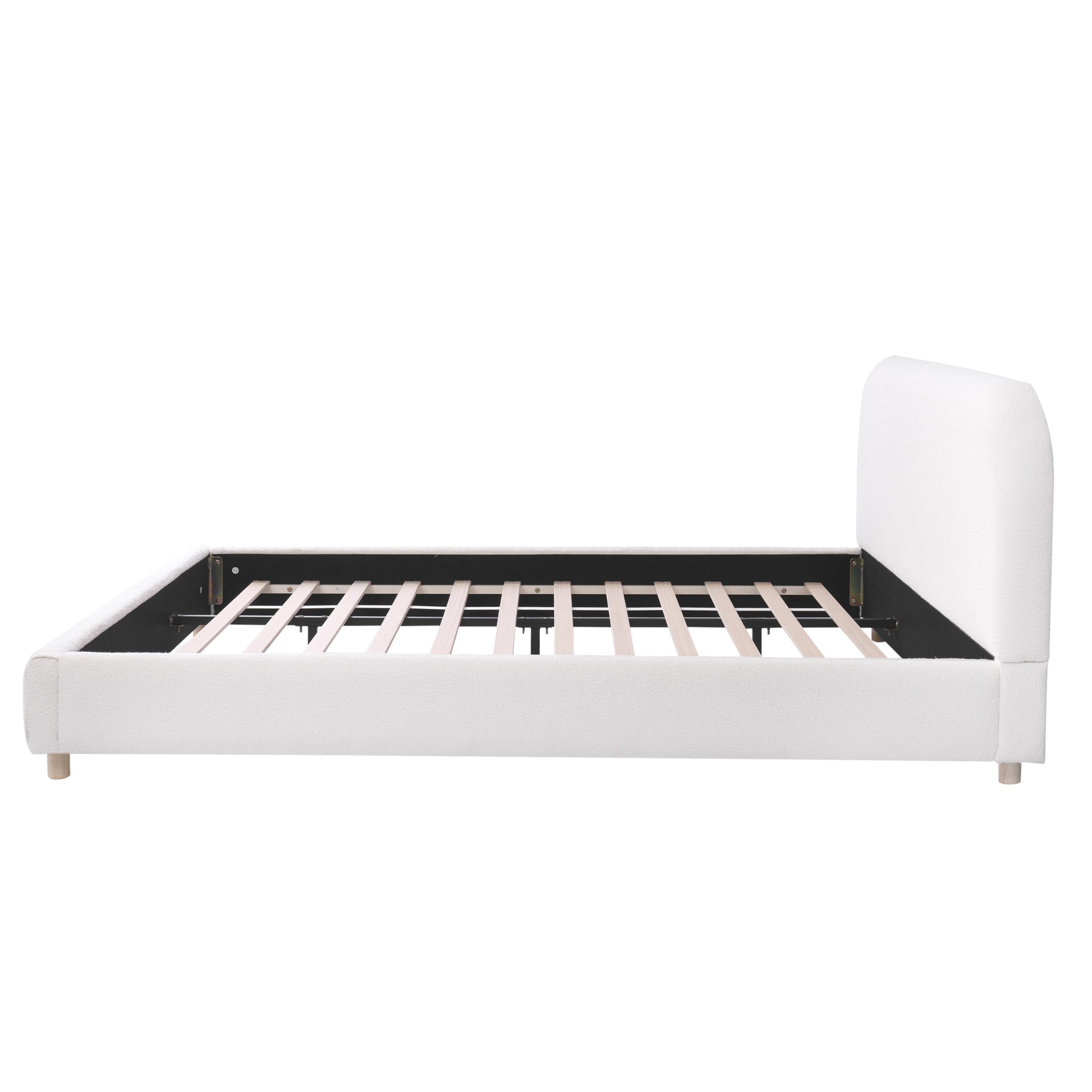 Queen Size Teddy Fleece Thick Fabric Upholstered Platform Bed