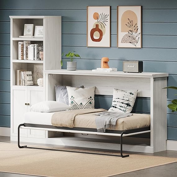 - Twin Size Murphy Bed: This murphy bed can be folded away into a cabinet to open up floor space in any room. It is the ideal space-saving furniture for a multi-use guest room, home office, or home gym. It's stylish and practical.