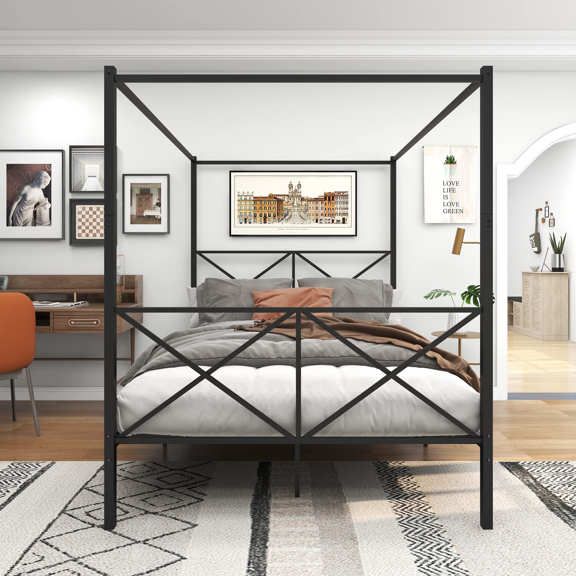 - [The Perfect Gift for Discerning Tastes]: This metal canopy bed makes an exceptional gift for anyone seeking a refined bed frame or looking to upgrade their current one. It's an ideal wedding present, a thoughtful first-apartment gift, or a perfect birthday, holiday, or anniversary surprise. Many customers even purchase multiple units to replace all the bed frames in their home. Don't miss out—secure yours now while supplies last!