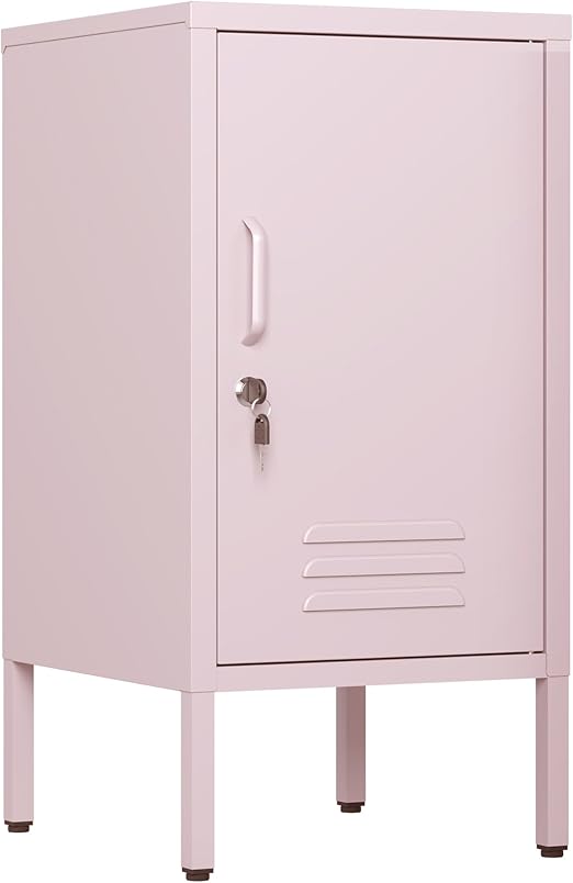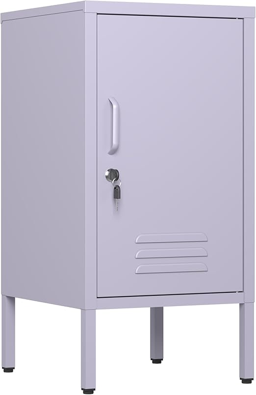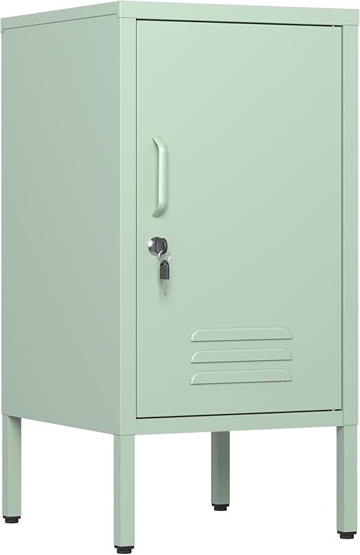 Metal Locker End Table, Single Door Metal Nightstand with 2 Adjustable Shelf