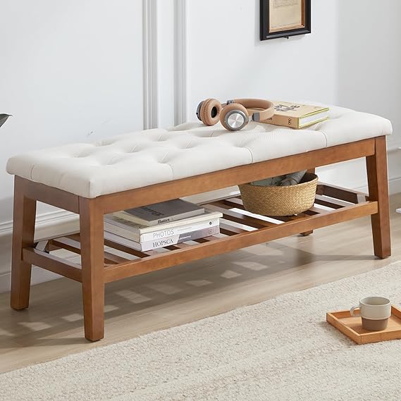 - A truly multi-functional accent piece, this bench can be a bed bench, an enterway bench, a shoe bench, also can be pulled up to dining tables, used to divide space in open floor plans, or act as a space-conscious coffee table.