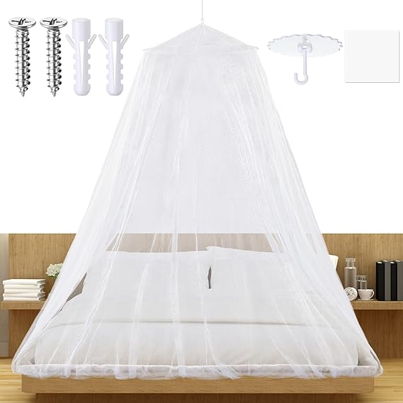 - Easy Installation: the package includes the enclosed conical mosquito net, a hanging kit, and adhesive hooks for hassle-free installation; No drilling is required—simply attach the hooks to your ceiling
