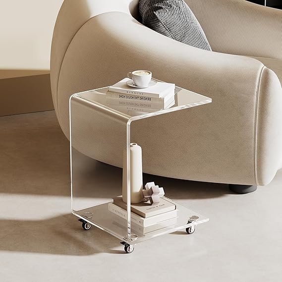 - Modern Style Side Table: Transparent color, lockable wheels and C shape design form such a modern style side stool!