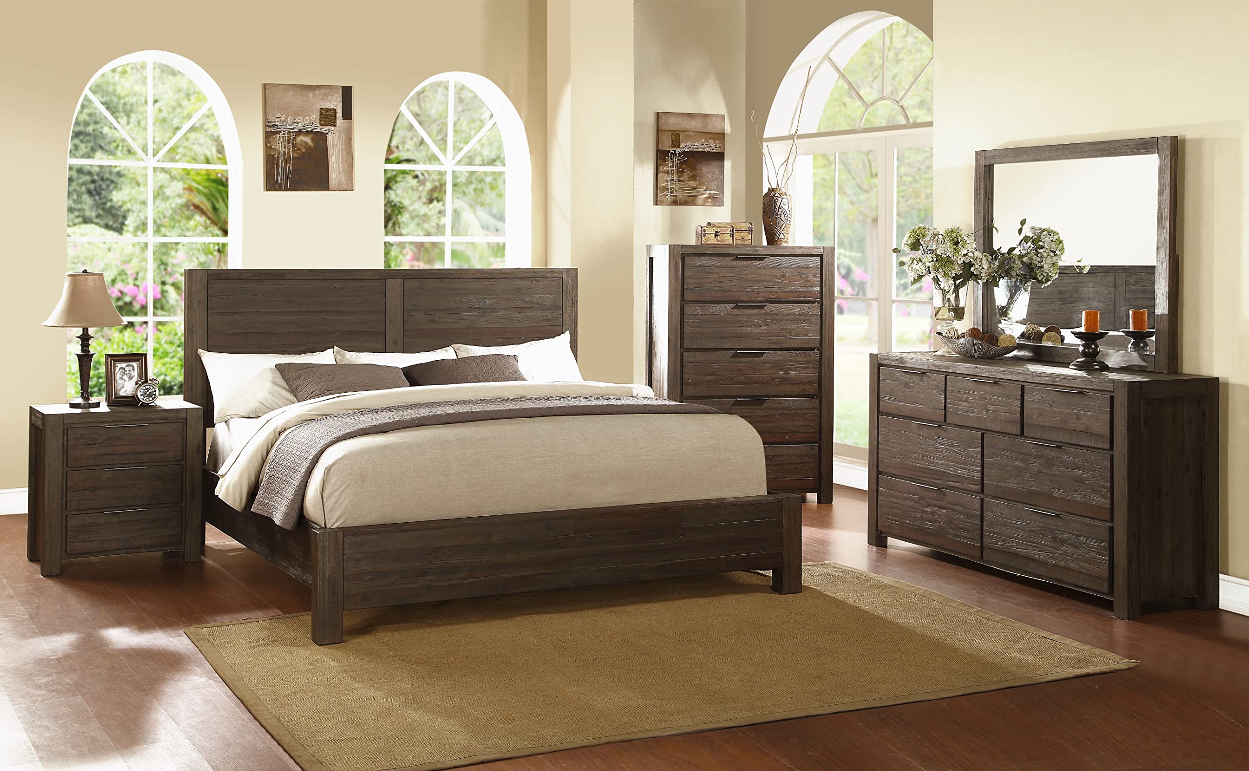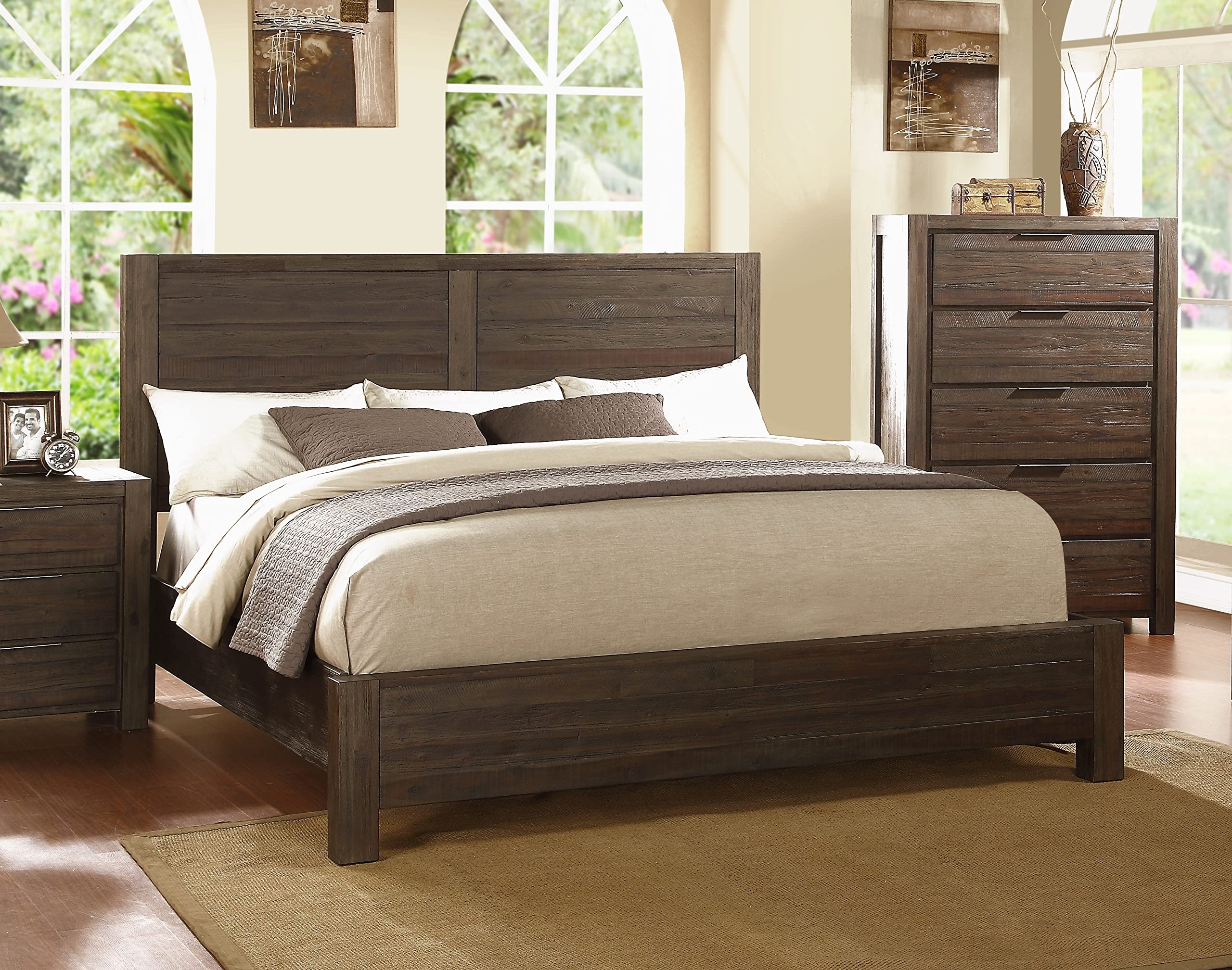 Furniture Solid Wood Panel Bed, King, Savanna - Coffee Bean