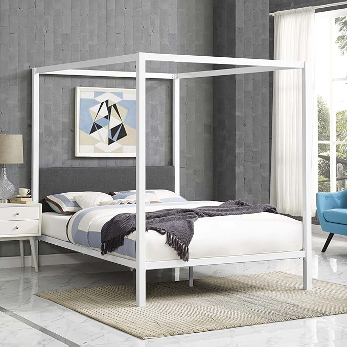 - CANOPY BED FRAME - A mattress foundation that elevates your decor, the clean lines and sleek silhouette of this canopy platform bed bring eye-catching appeal to the master bedroom and guest room alike
