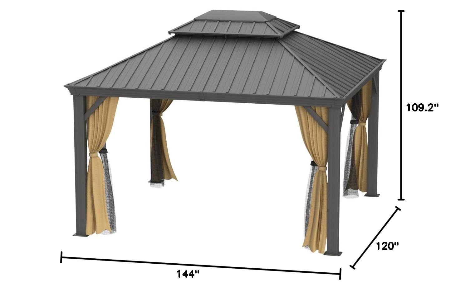- SPACIOUS & STURDY: With dimensions of 12' L x 10' W x 9.1' H, our gazebo offers 120 square feet of coverage, comfortably accommodating 6 to 8 people. It's perfect for outdoor gatherings, barbecues, relaxation, and more.