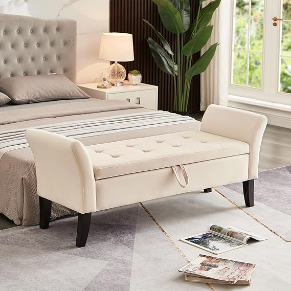 - This elegantly designed bench not only provides you with a stylish seat or a comfortable rest, but also a spacious storage bin for shoes, blankets, books and many other sundry items.