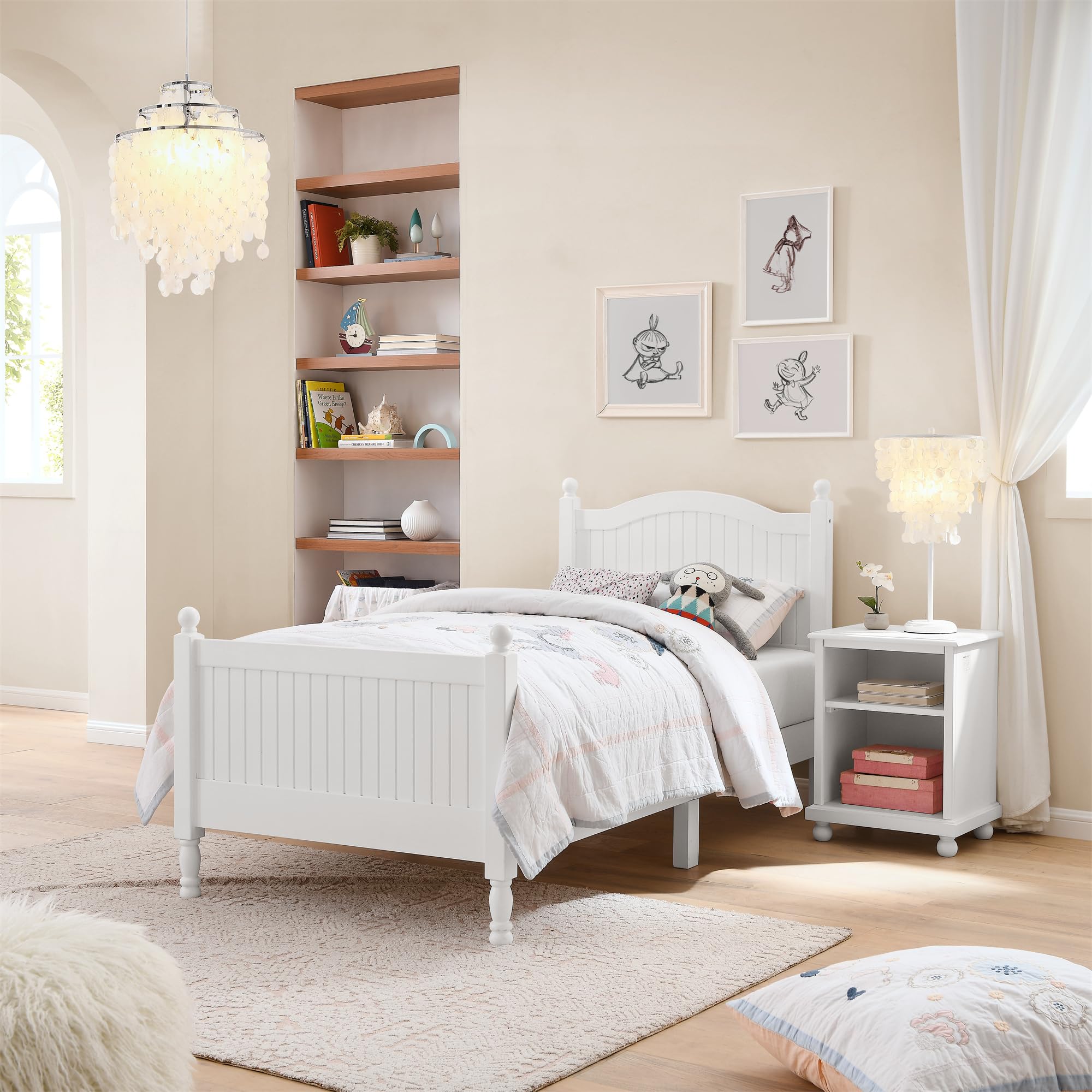 - Build Dream Castle: Combining the classic style with sleek appearance, prop some pillows behind your back and you will have a comfortable place to read.the design of footboard that is not high or low, can prevent mattresses from sliding.and the footboard keeps bed textiles from falling onto the floor while sleep.uni-sex white & navy blue finish good for both boys or girls. This twin bed builds sweet dream castle to accompany your lovely to fall asleep and develop their independence.