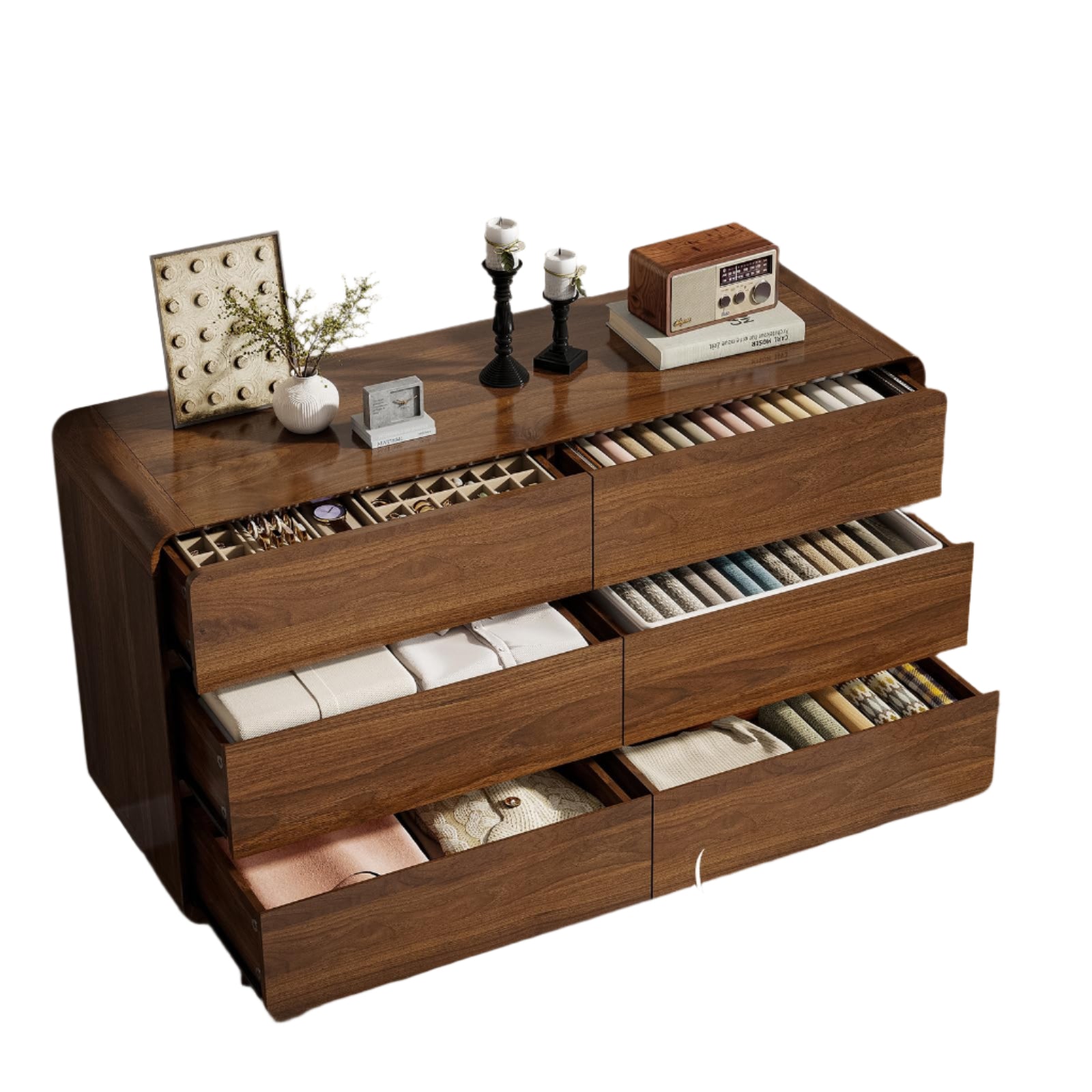 - The wooden dresser measures 47.2" W x 15.8" D x 30.7" H. the bedroom dresser comes with 6 spacious drawers. On the ample tabletop of the wood dresser, you can display photo, art , lamps, plants, antique clock etc. The drawers provide enough storage space for clothes, blankets, bedding, pillows, and diaper, avoiding from clutter and keeping your space neat and tidy.