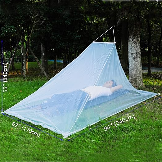 - Size: 86’’ (Length) x 47’’ (Width) x 43’’ (Height), only weight 10 oz (280 g) and can be folded into a practical 10 x 13cm (4" x 5") pocket, Mosquito netting for camping is designed for single person outdoor use. The asymmetric style design maximizes coverage with minimum weight and packaged size.