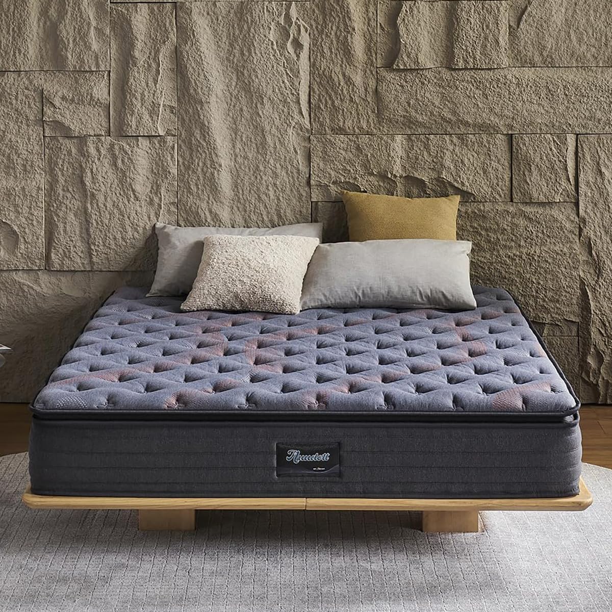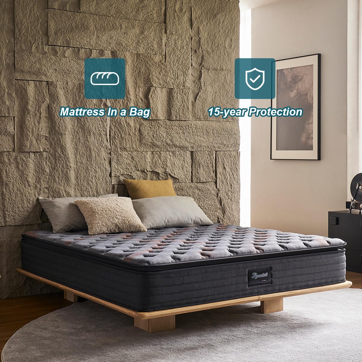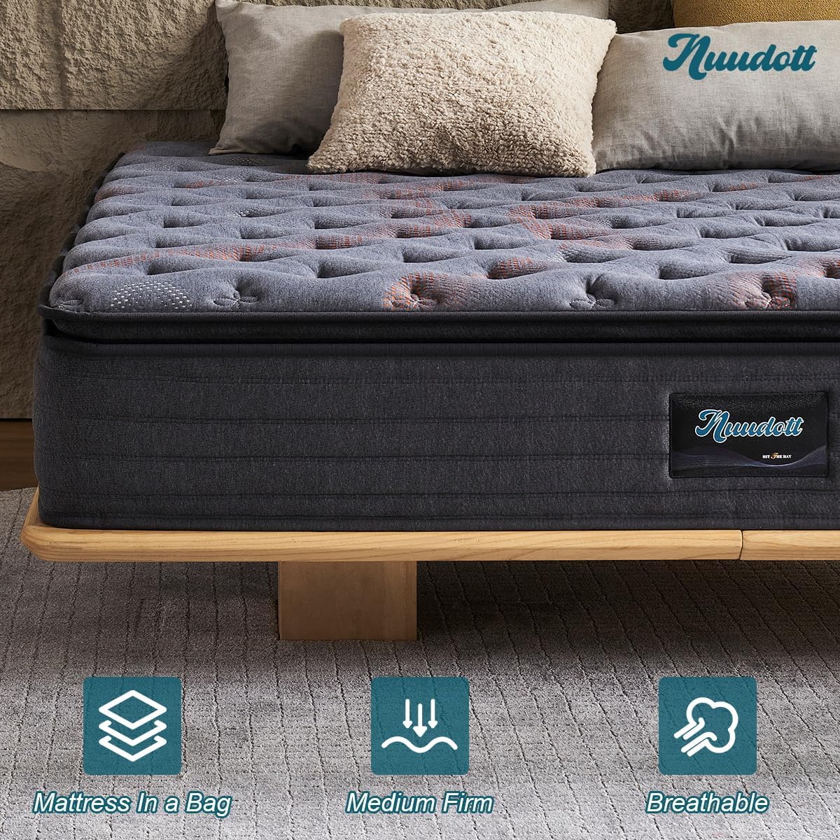 Nuudott 12 Inch Pillow Top Hybrid King Mattress, Medium Firm with Pocket Springs and Memory Foam, Pressure Relief Mattress in a Bag for Bedroom, Guest Room, and Master Suite