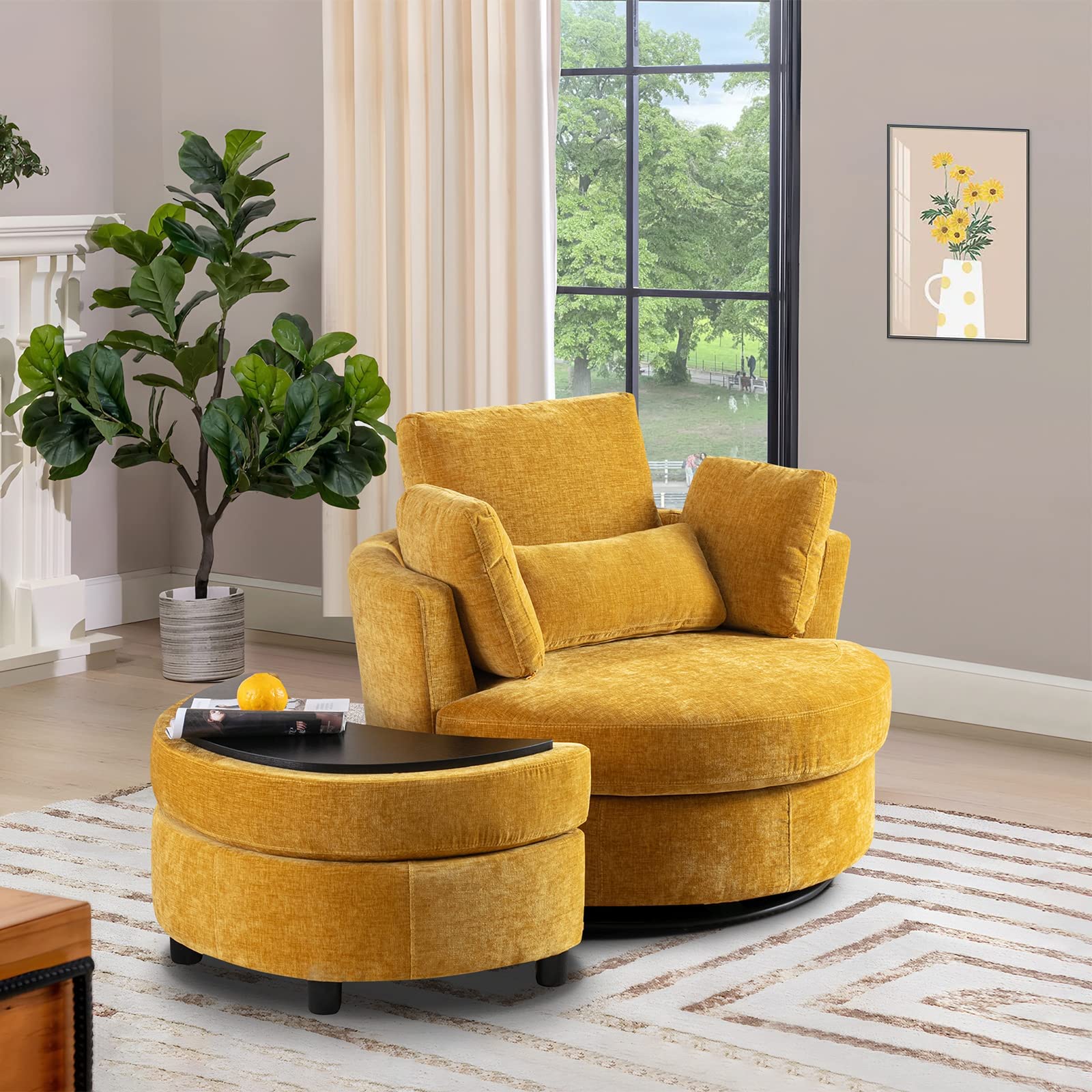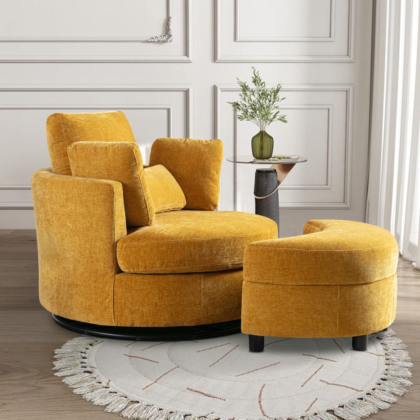 - Our swivel accent chair comes with an ottoman stool that can be opened. Oversized chairs for living room comes in handy when you require a piece of functional and accent furniture. chair and a half with ottoman provides ample storage space for organizing toys, sheets, pillows, blankets or magazines neatly.