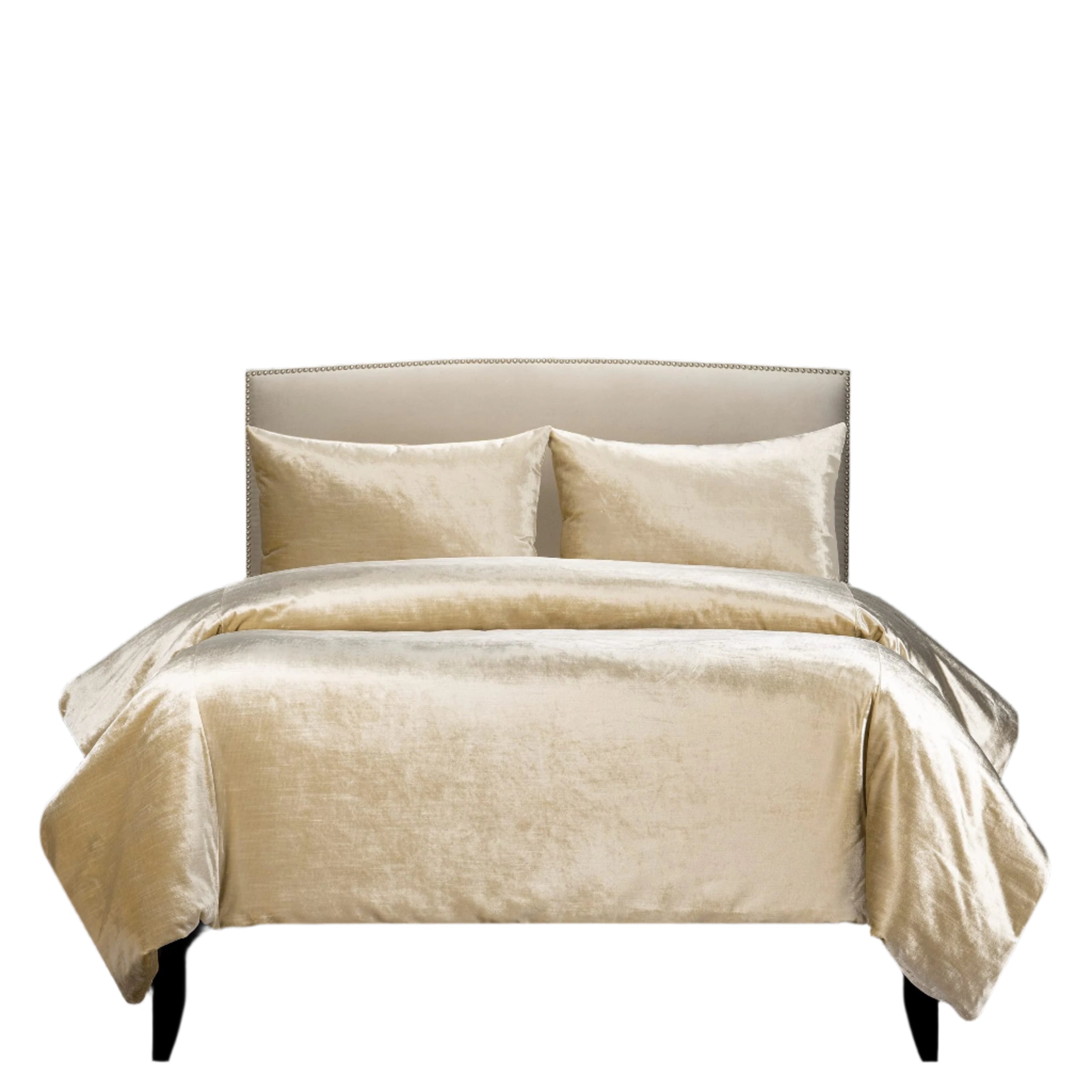 - Features: Set includes duvet cover, down-alternative comforter, 2 pillow shams (1 in Twin set), and 2 throw pillows, Duvet cover made of ultra-soft microfiber, Gold color, Duvet cover has no-shift design, 8 hidden buttons attach to comforter, Zipper closure