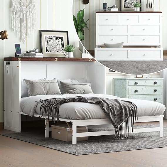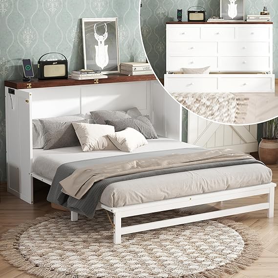 Queen Murphy Bed Cabinet, Murphy Bed Queen with Storage Drawer
