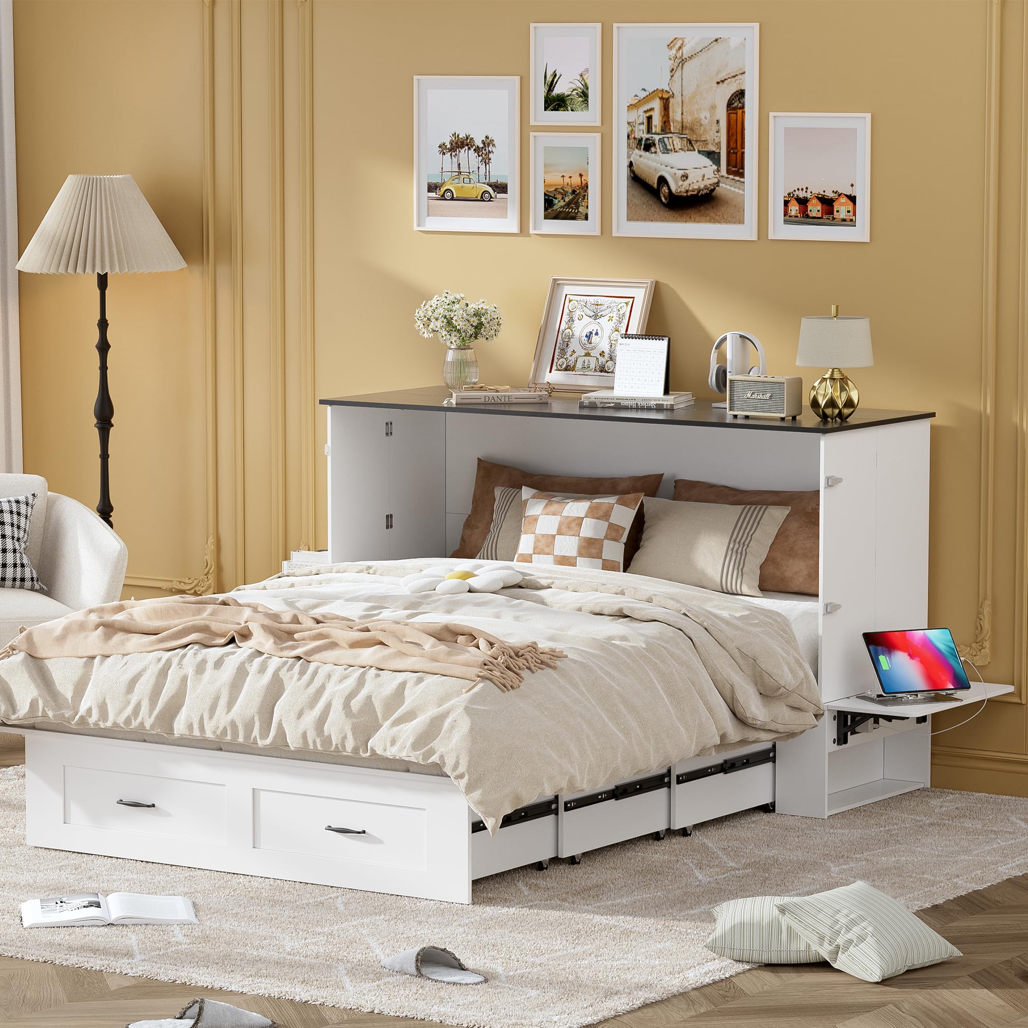 Queen Murphy Bed - Murphy Cabinet with Storage & Charging Station