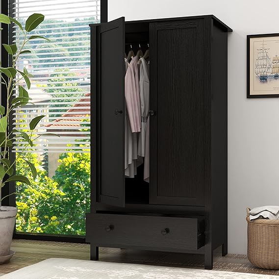 - The wardrobe features 1 storage compartments and 1 drawer on the bottom right side can store your essentials. It also features a shelf at the top, place your clothes, towels, shoes at the top and make the most out of the space