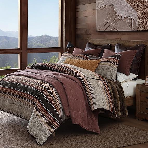 - CABIN BEDDING: Estes is part of our line of rustic comforter sets, featuring cool earth tones, horizontal stripes, and flowing natural motifs. A chic yet elegant choice for cabin or lodge style bedding.