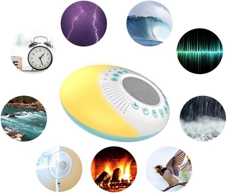 - 9 non-circulating natural sounds: The sleeping sound machine is equipped with 9 smooth non-circulating and clear sounds including thunder wave sound white noise rain sound bird sound firewood sound fan sound flowing sound ticking.