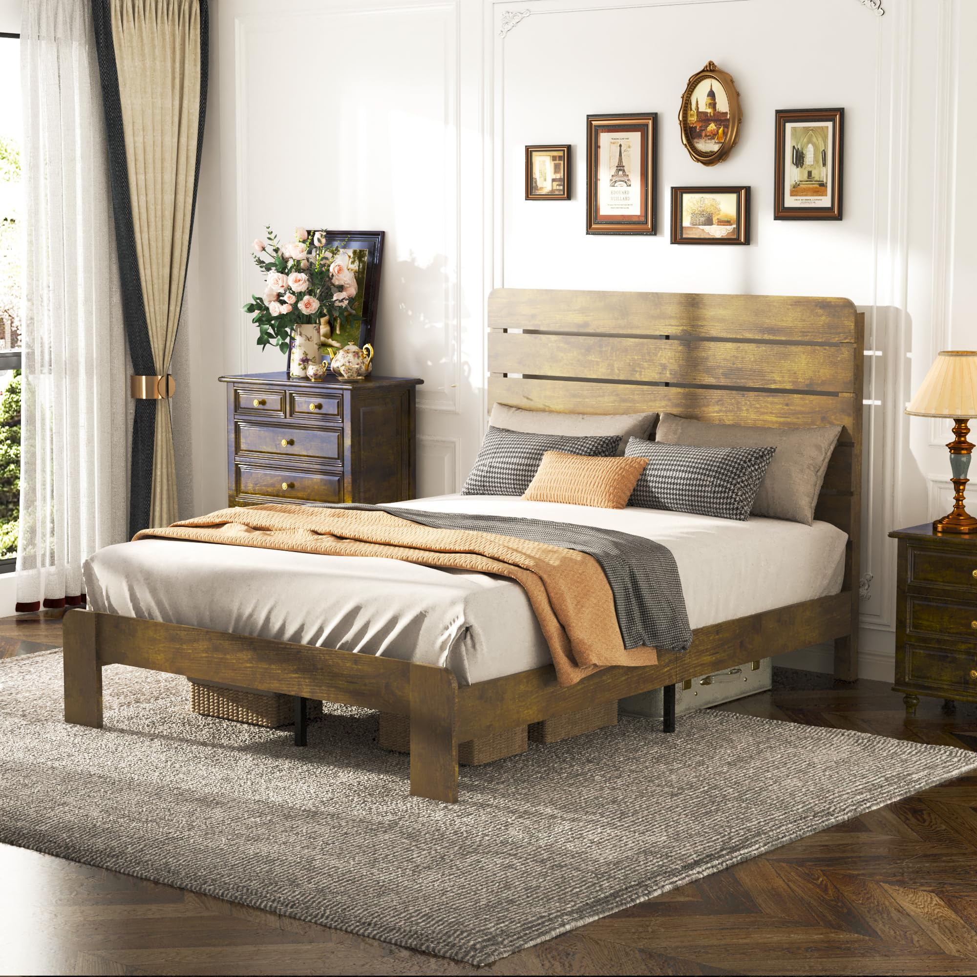 - The wooden bed frame adopts a reinforced high-quality steel frame and an extra-wide sturdy wooden slat support system to ensure safety and durability, providing a strong and reliable support structure, with a capacity of up to 1000 pounds, and will not sag, There's no slipping, and your mattress doesn't need a box spring.