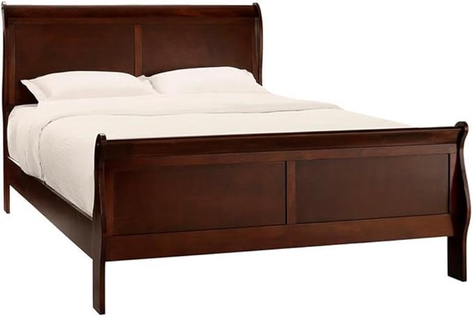 Traditional Wood Twin Sleigh Bed in Brown Cherry