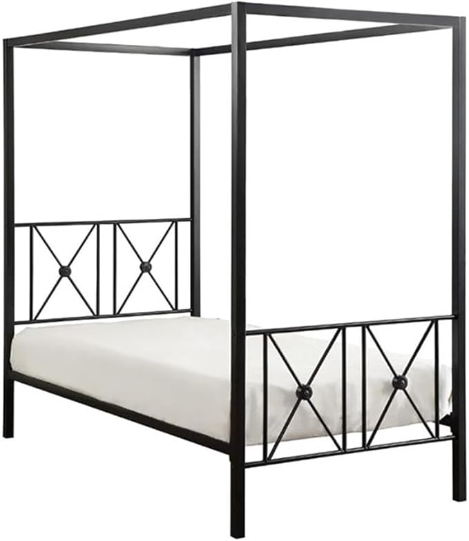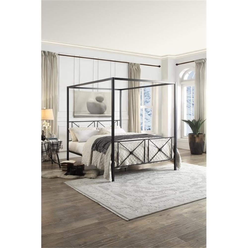 Transitional Metal Queen-Size Canopy Platform Bed in Black