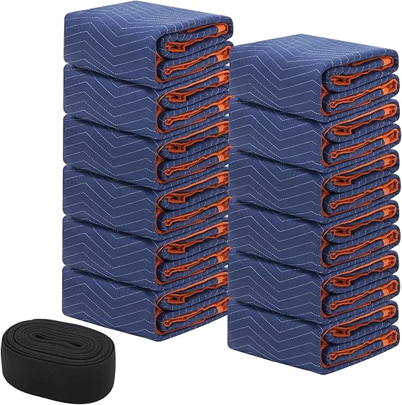- Professional Moving Blanket: Comes with six oversized 80x72 inch packing blankets and a 196-inch rubber band. The perfect size to protect your large items during moving and transportation. It prevents scratches, dust, and moisture, providing excellent protection for furniture, appliances, and valuable items