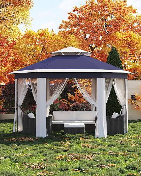 - This pop up gazebo features thetechnology, making installation super simple. No tools required—just press the button lightly for quick setup within minutes. This outdoor gazebo saves time so you can dive into outdoor fun.