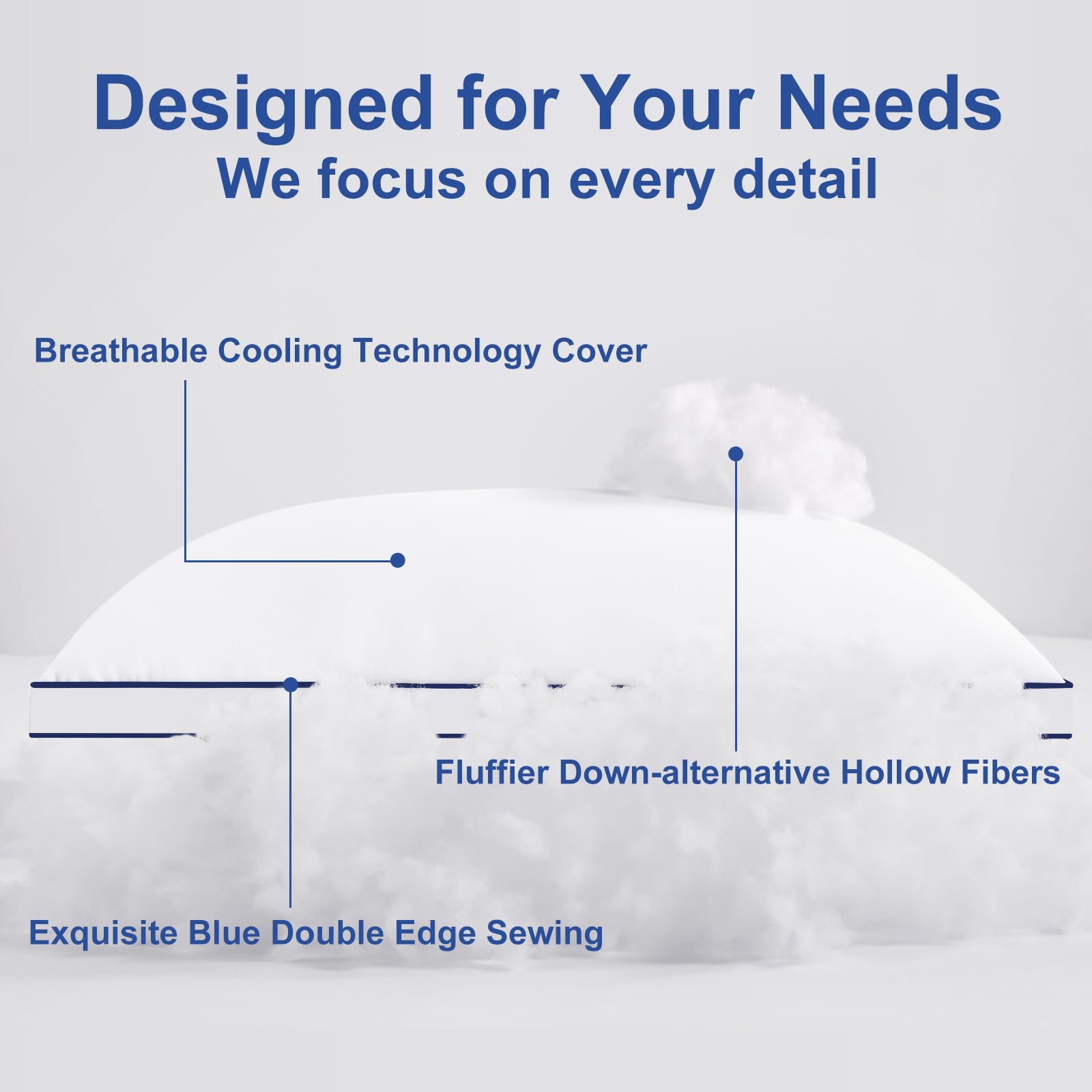 - ✅【Double Edges Sewing Design】Exquisite double edges sewing design and detail handling, and blue double edges create hotel-level luxury style.Let you enjoy the hotel quality pillows sleep experience.