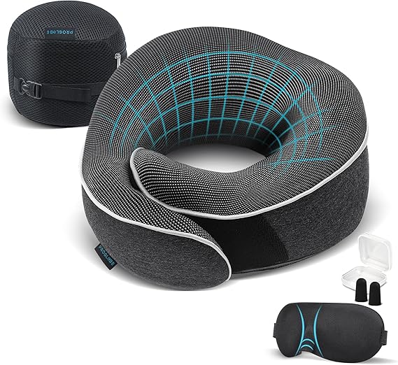 - Proglobe Essential Series Neck Pillow – designed to provide proper support for improved comfort while resting, traveling, or sleeping. Helps reduce neck strain and supports better posture during long trips. Ideal for use in cars, planes, long-haul flights or at home while reading, watching media, or relaxing.